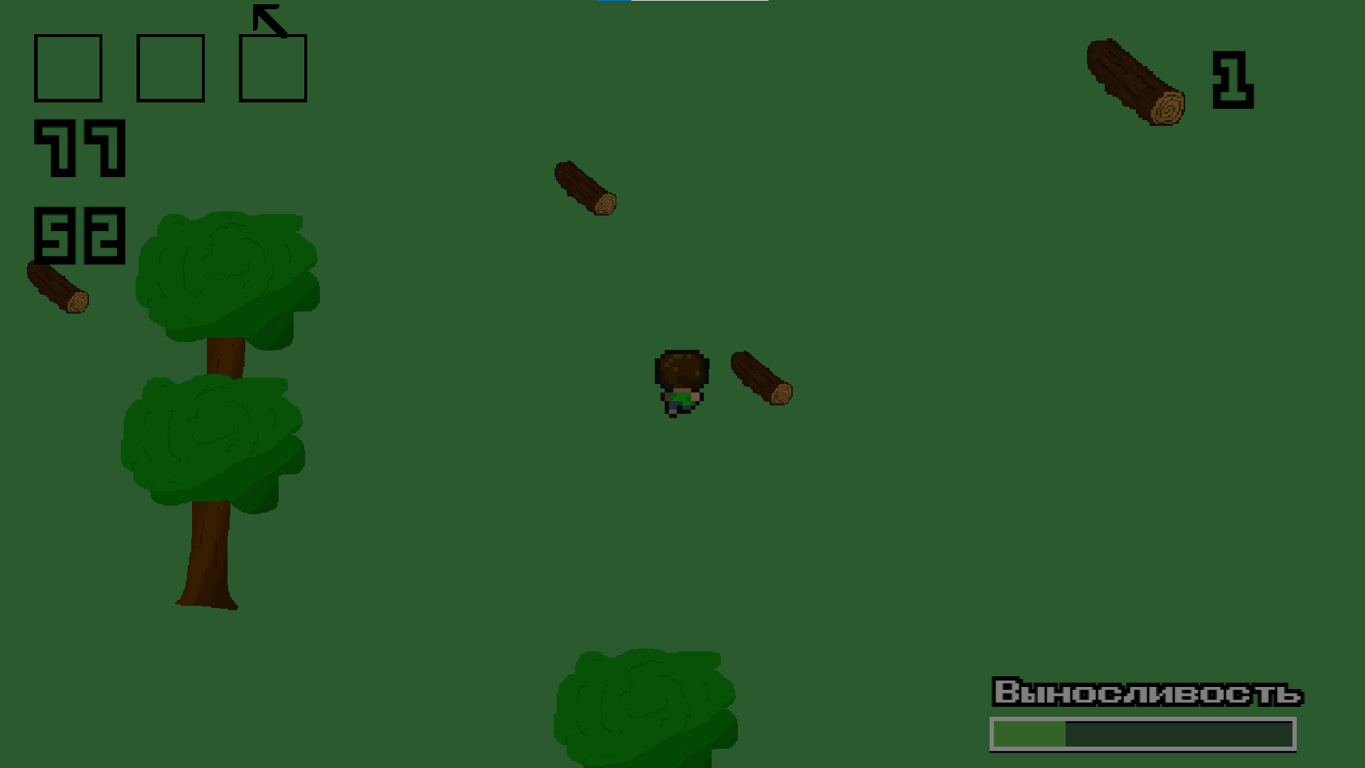 Случайная генерация леса — расположение деревьев и ресурсов меняется каждый раз, создавая разные условия.